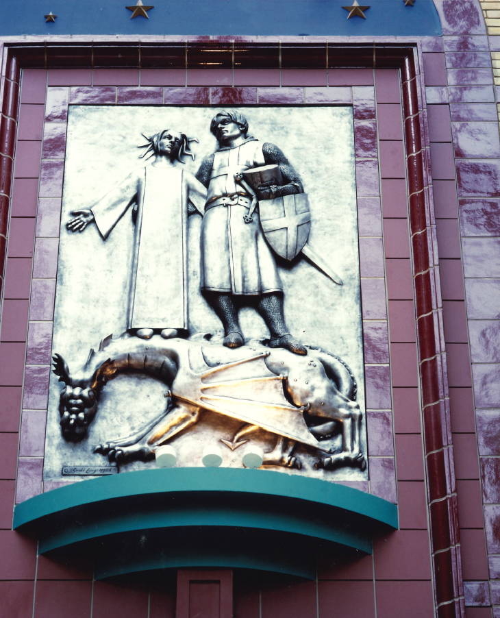 You might not know this, but hidden in plain sight is some art that’s been here since the very beginning. A series of panels, installed when we opened in 1996, tells a modern reimagining of the legend of St. George and the Dragon. Next time you visit, see if you can spot them!